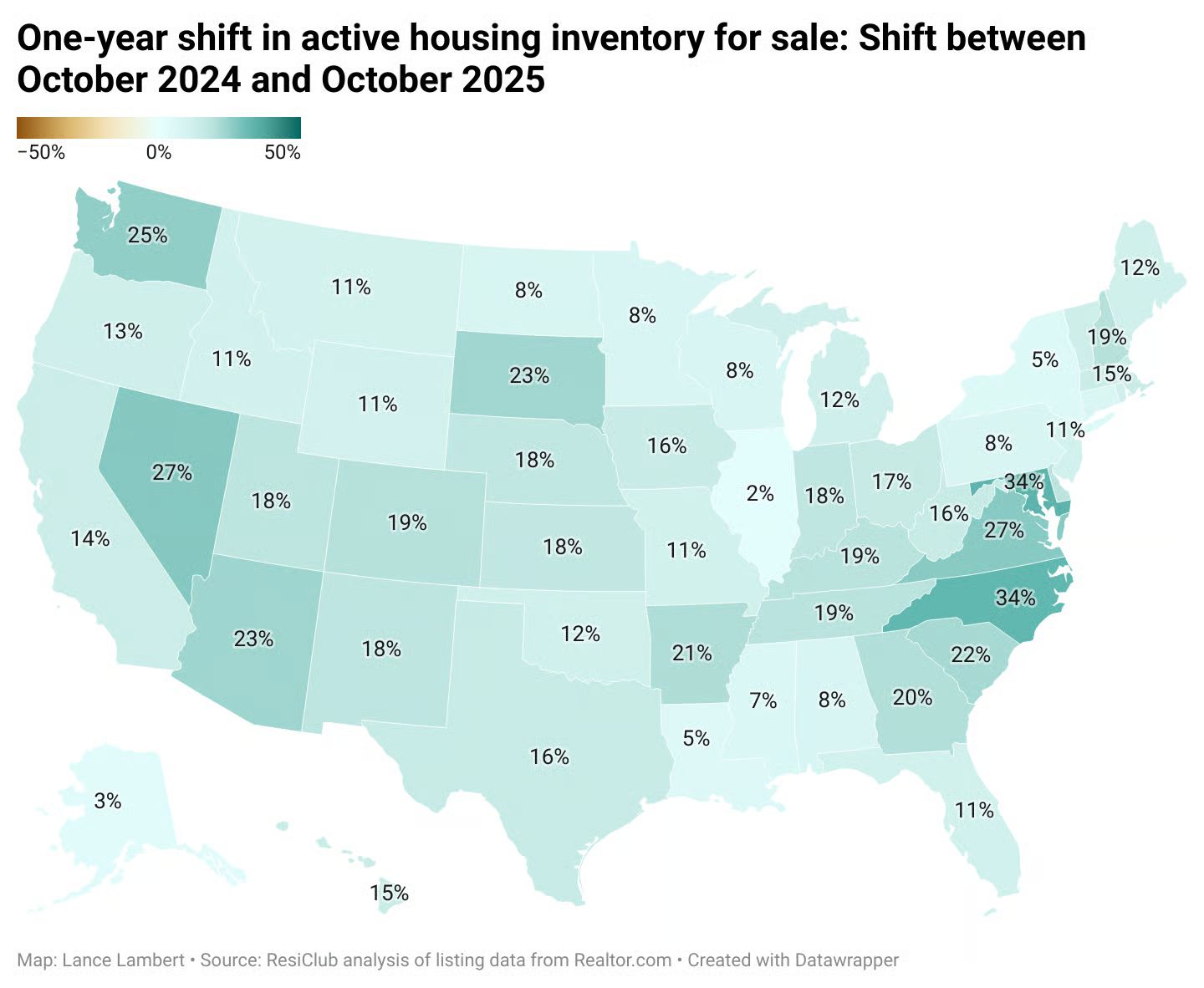 Another stat on the plus side: Indiana is up 18% from Oct ‘24 to Oct ‘25 in housing inventory supply. Early in the year, we saw fairly strong demand-side action in lower inventory environment, however that evolved into an inventory rise that started climbing after mid-June. Now, in Indiana about ¼ listings are dropping prices. (Source: Complete ad hoc estimate on my part witnessing the market, frankly).