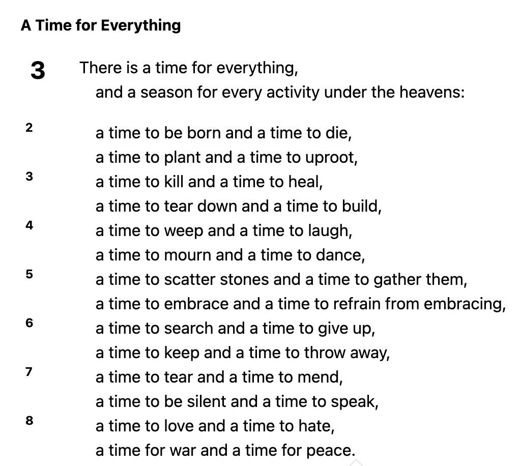 I think more and more about rhythms, especially now that I am a father. As the writer of Ecclesiastes says…